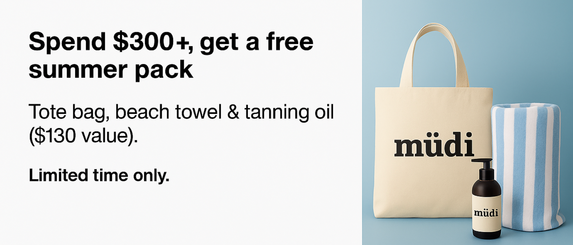 Spend $300 and get a FREE tote bag + beach towel + sand repellent tanning oil (valued at $130!)
