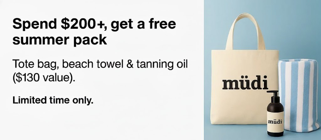 Spend $200 and get a FREE tote bag + beach towel + sand repellent tanning oil (valued at $130!)