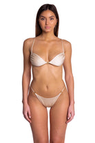 The Capri top by MUDI SWIM is a halter bikini style featuring an adjustable fit and a gold ring detail at the centre. Made from soft, ultra-stretch Italian Lycra and double lined for a smooth, comfortable feel.