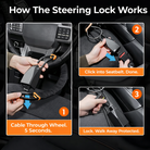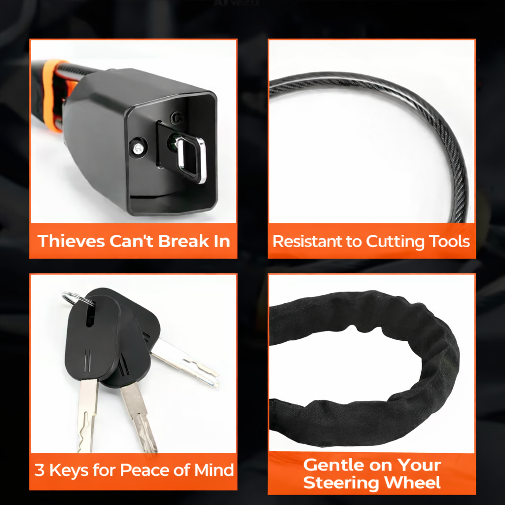 Our Anti-Theft Steering Wheel Lock gives you a simple, reliable way to protect your car. By locking the steering wheel in place, it helps stop the vehicle from being driven away and makes theft far less appealing.
