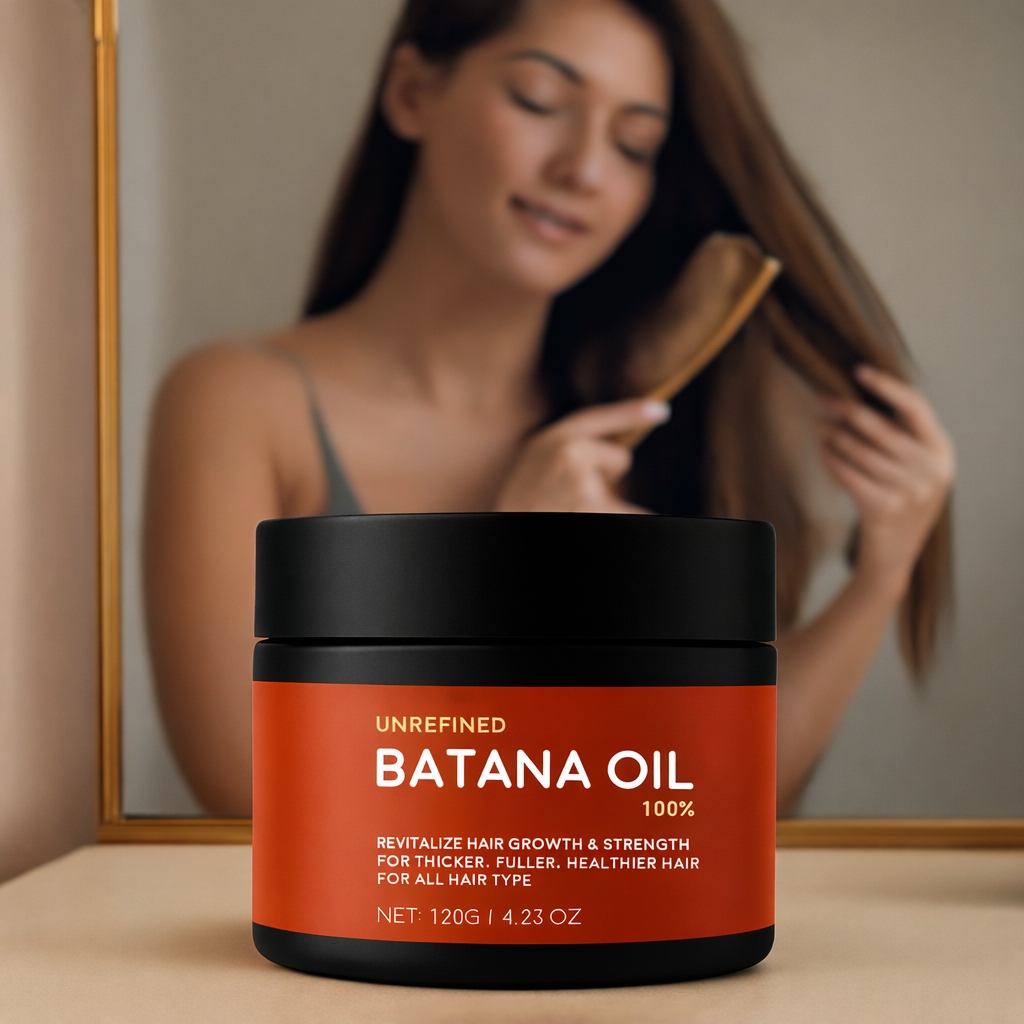 Experience healthier, fuller hair naturally with our Hair Growth Batana Oil. This nutrient-rich oil is designed to nourish your scalp, strengthen hair strands, and promote visible growth. Whether youβre dealing with thinning, breakage, or dull hair, itβs the perfect daily ritual to restore your hairβs natural shine and vitality. Lightweight, easy to apply, and suitable for all hair types β just massage it in and let it work its magic.