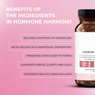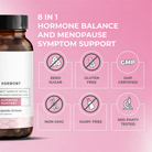 Designed for women navigating hormonal changes, this daily supplement supports overall balance from within. With carefully selected ingredients, it helps promote emotional stability, restful sleep, and sustained energy, making it easier to manage symptoms consistently and comfortably, while fitting seamlessly into your everyday life.